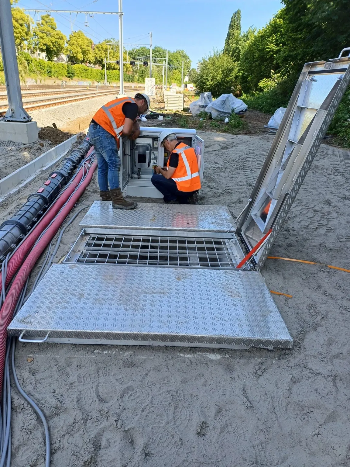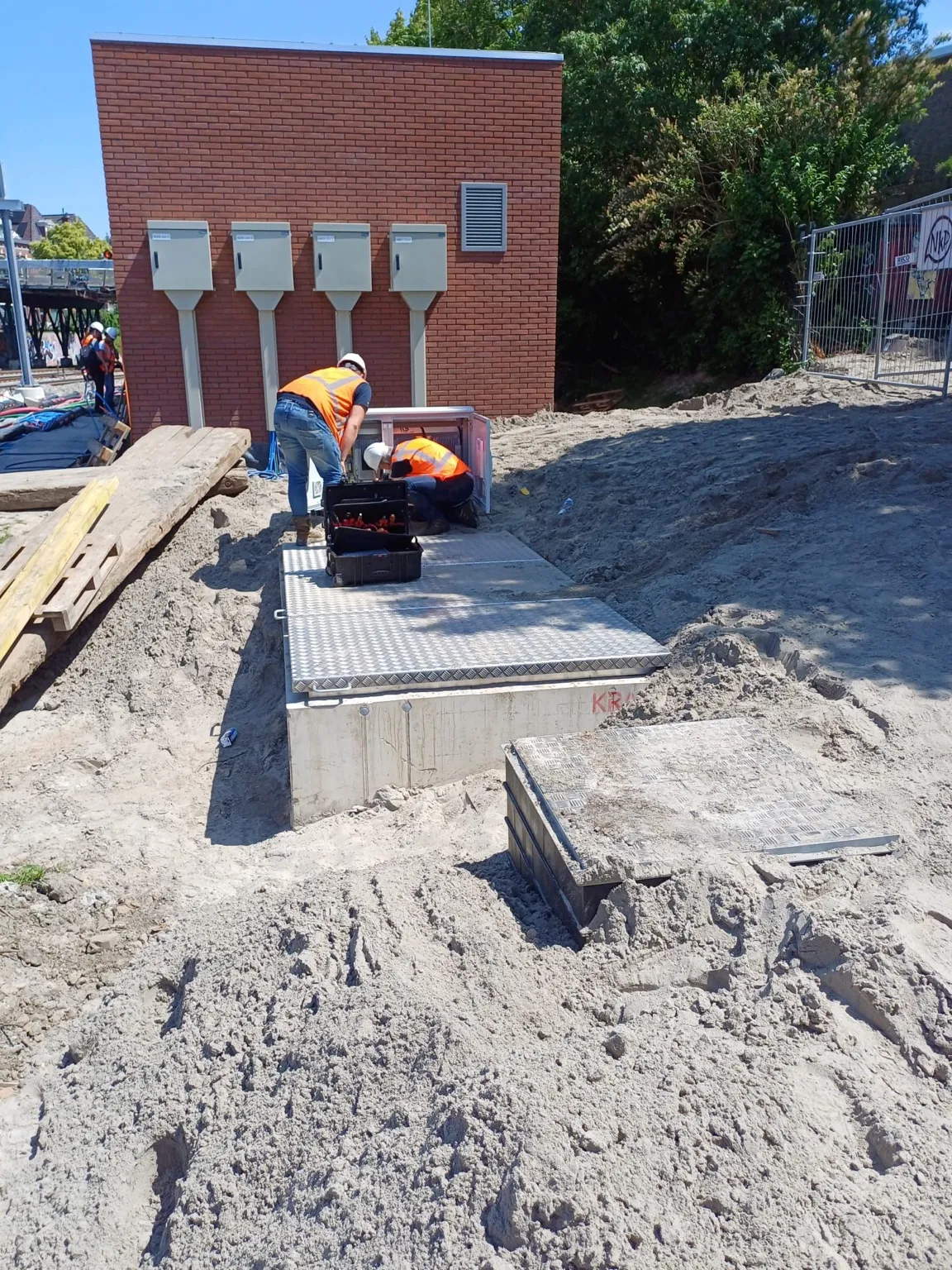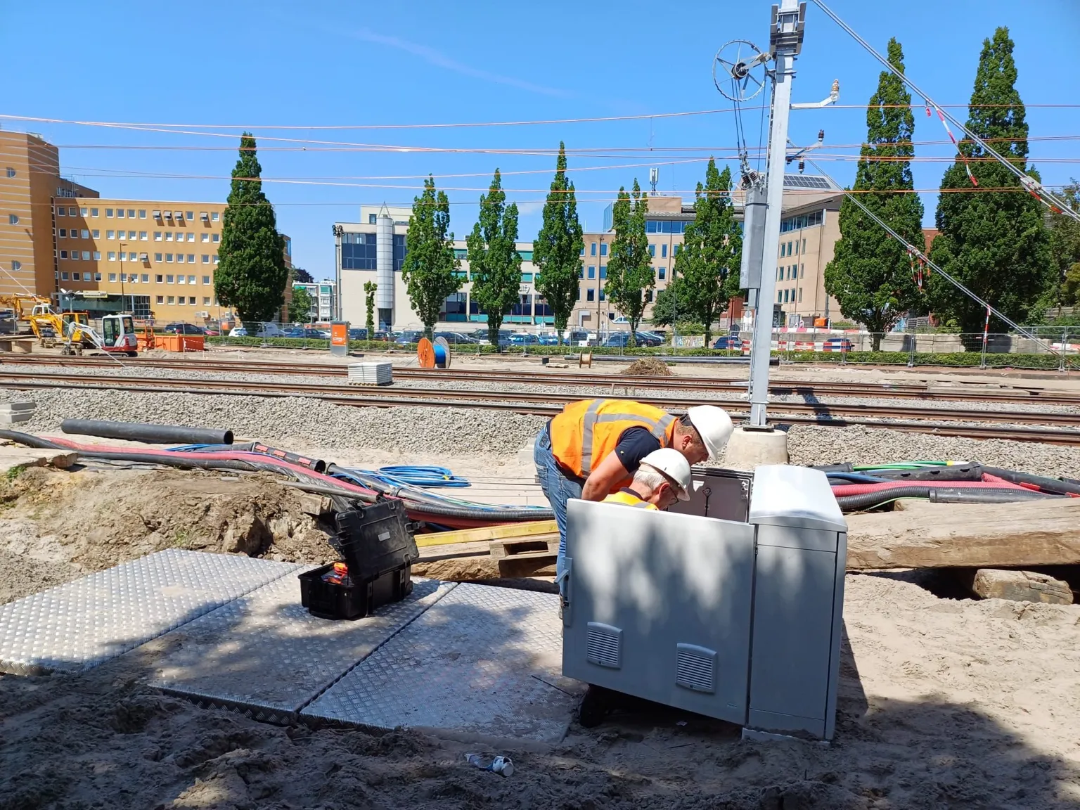 Implementação de um sistema de drenagem a nível constante numa estação ferroviária nos Países Baixos.
